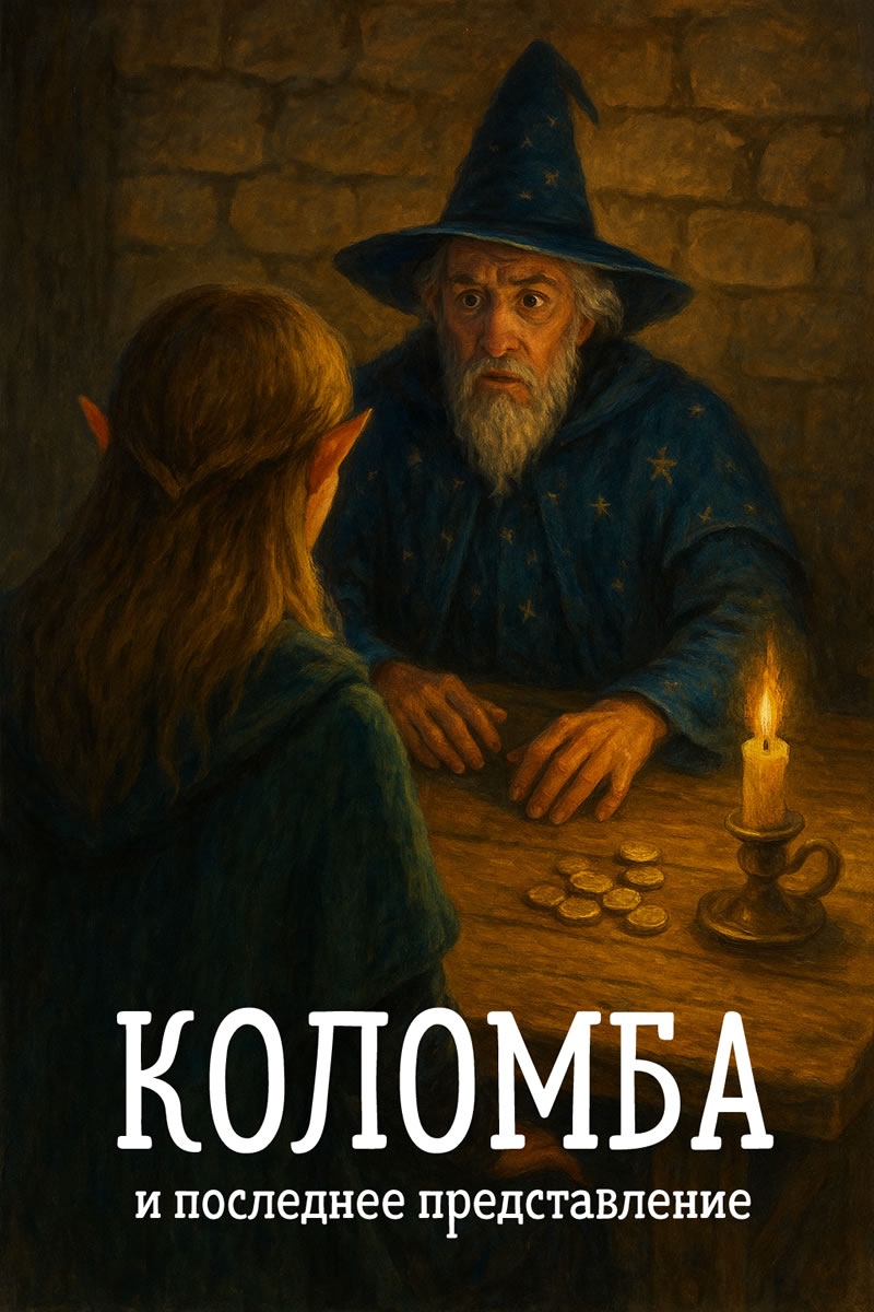 В этот момент в таверну ворвались стражники, а за ними — эльфийка Коломба. Она без спешки подошла к столу, опустилась рядом с магом и его спутником, вежливо кивнула и сказала почти извиняющимся тоном: