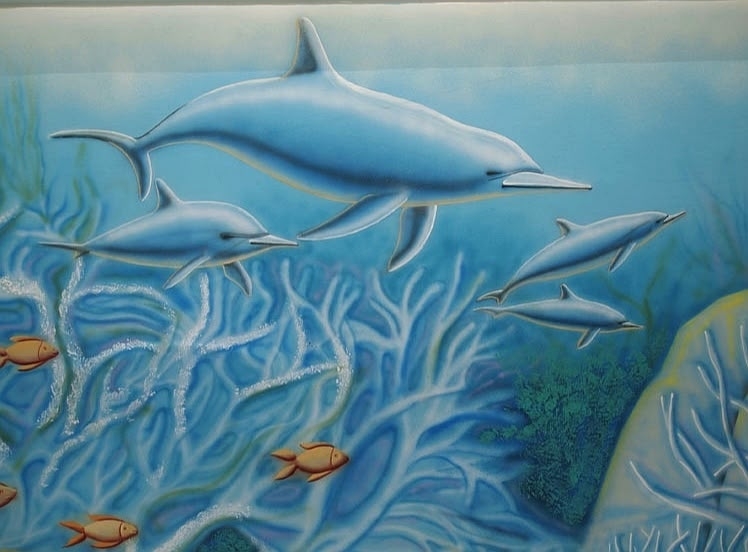 . "Подводный мир" (фрагмент настенной росписи аэрографом и акриловыми красками), 2007-2008 гг. Автор – Алексей Акиндинов.