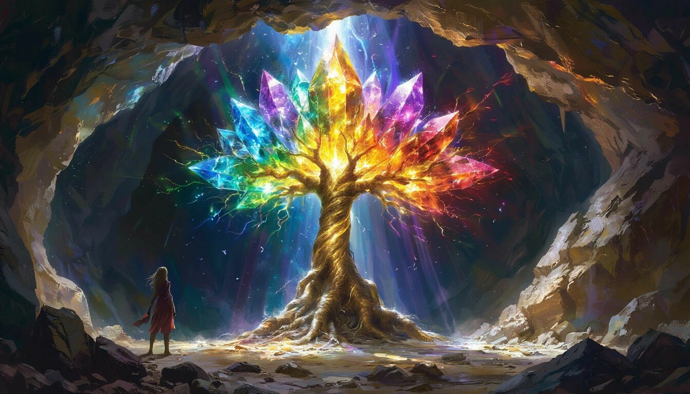 Перед ней открывалась грандиозная пещера, в самом центре которой находился, переливаясь внутренним светом, исполинский Кристалл. Он возвышался над девочкой вчетверо, а от его основания во все стороны расходились сияющие жилы-корни, напоминающие ветви гигантского дерева из чистого света. Но зрелище это было несовершенным.
