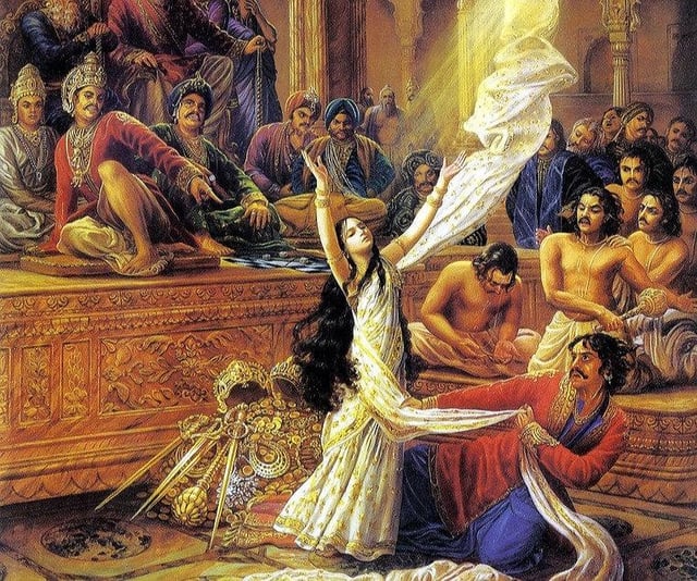 Бог Кришна пришел защитить душу, сделав сари Драупади бесконечным. На самом деле, когда наступает критический момент, Бог сам приходит и даёт знания душам, как избавиться от нечистоты. После этого внутри каждой жаждущей знания души разворачивается война Махабхарата.