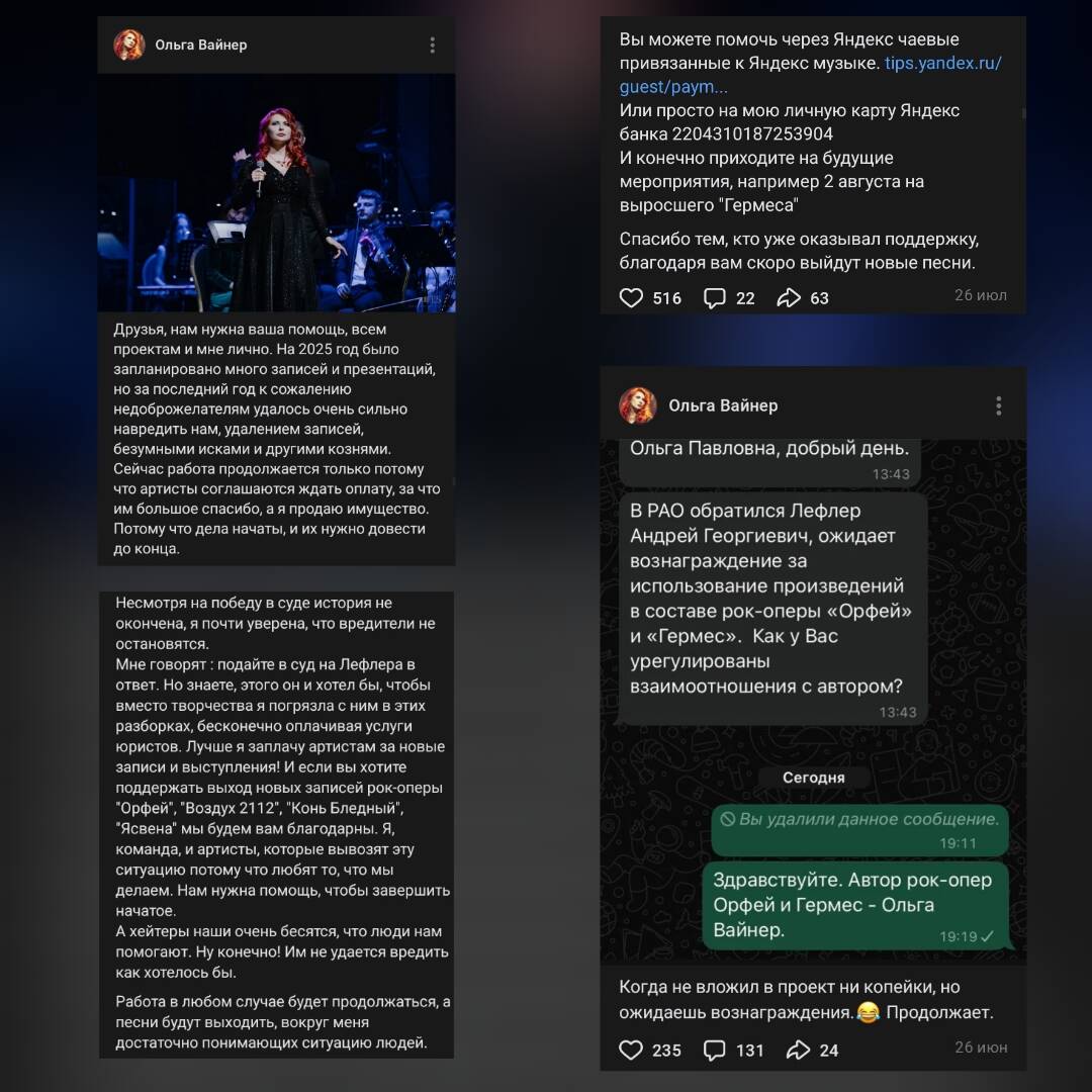 Что касается использования и распространения произведений, то в случае, если Ольга Вайнер использует свои рок-оперы или другие авторские произведения без согласия правообладателей и не получает за это авторское вознаграждение, то такие действия нарушают положения Гражданского кодекса РФ, в частности статьи 1258 ГК РФ «Авторские права» и 1259 ГК РФ «Имущественные авторские права».
