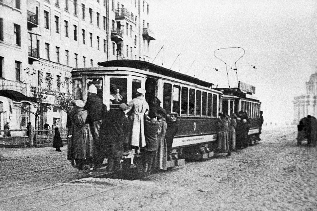 Иллюстрация: 1918-1920. Москва. Московский трамвай. Где-то среди людей, висящих на подножках трамвая, искусно затерялся Всеволод Владимиров, слушатель группы нелегальной разведки первых инспекторских курсов ВЧК.
