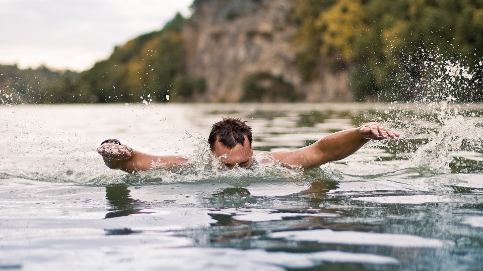 После этого я решил немного ополоснуться в воде. Несмотря на прохладную воду, я разделся и голышом бодро нырнул в речку.