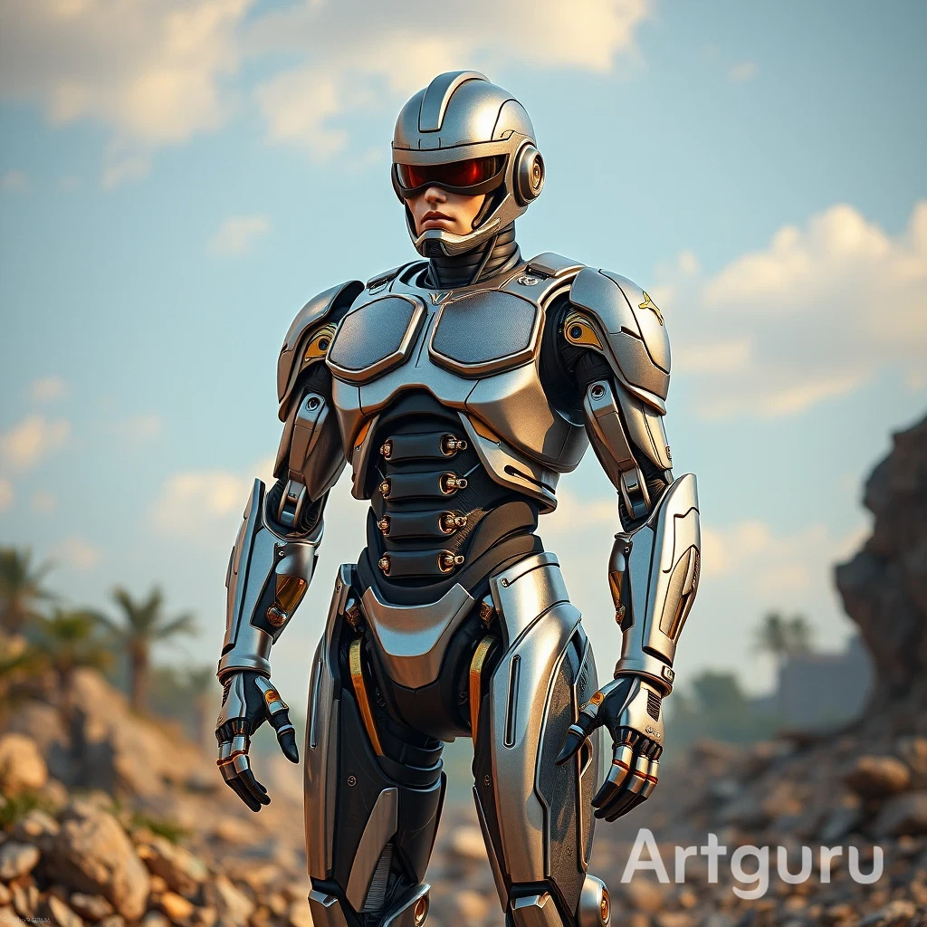 Антесор мчался по улицам на своем усиленном мотоцикле, ветер свистел вокруг бронированного корпуса. Его сенсоры фиксировали каждую деталь: потоки пешеходов, мигающие светофоры, даже биение сердец в ближайших зданиях. Подъехав к банку, он увидел хаос: разбитые витрины, крики внутри, вспышки выстрелов. Грабители заметили его силуэт в дверном проеме — высокую фигуру в серебристой броне, с плечами, похожими на крылья стального ангела. "Что за чертовщина?" — заорал один из них, вскидывая автомат.