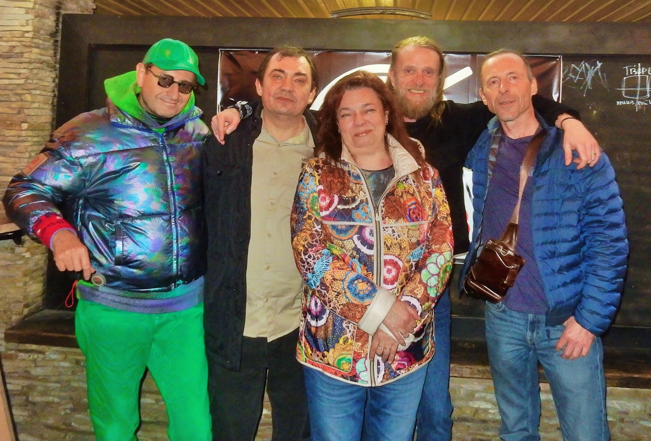 На фото — те, кого я люблю и очень ценю, кто умеет не только пить в своё удовольствие, петь для удовольствия других, но, главное — жить не только для себя, но и для других. Справа налево: Рустам Гоновичев, Денис Шкарбанов, Вера Весенняя, Кирилл Матвеев, ну и конечно, автор данной публикации Мойрэрамос Гамос. Спасибо за ваше творчество, друзья мои! Вы навсегда в моей петроградской душе!