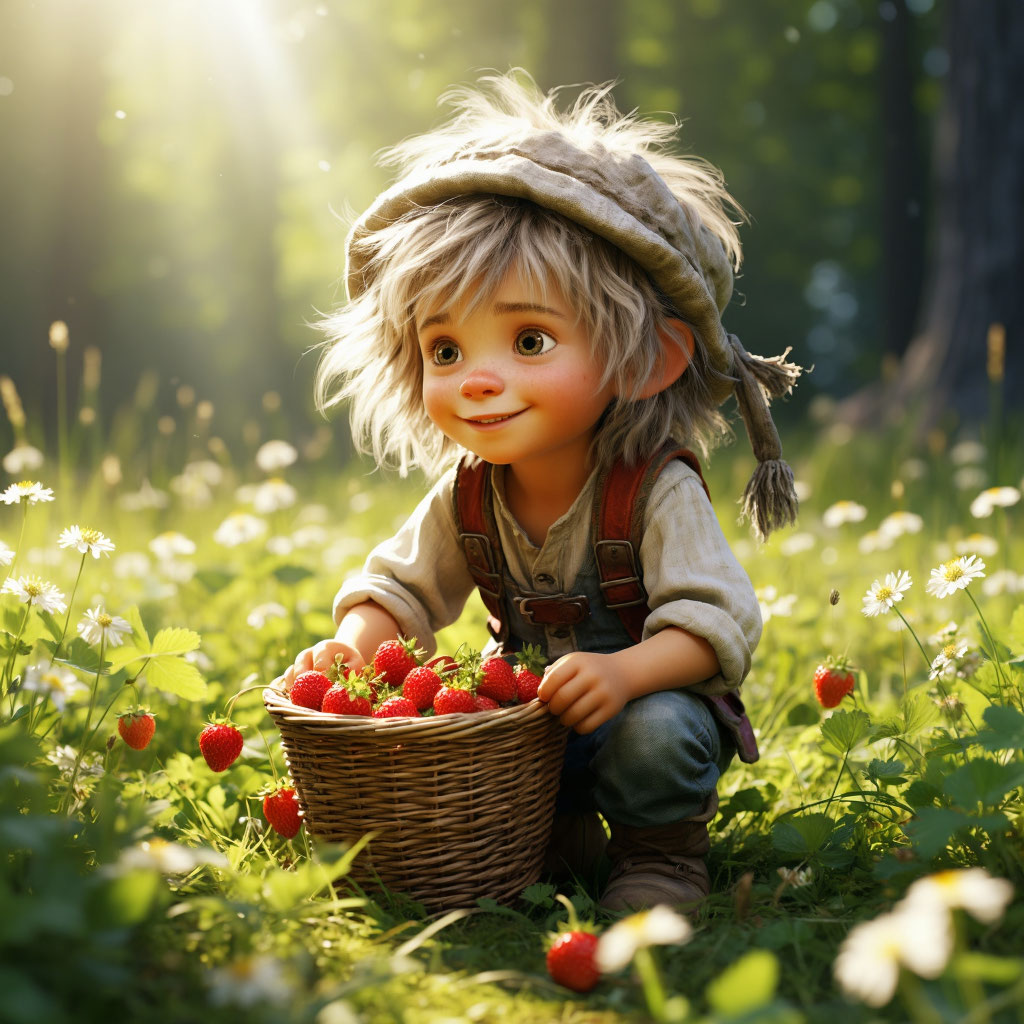 Под утро Иннокентий заснул, и ему впервые в жизни приснился сон. Не украденный, а свой собственный. Ему снилось, как он оказался в солнечном лесу, где воздух был наполнен медовым ароматом цветов и свежей травы. Рядом, улыбаясь, стояла мама домовёнка — её лохматые волосы переливались в лучах солнца, а глаза светились мягким, заботливым светом. Она звала его собирать землянику. Они шли по полянке, укрытой кружевной тенью берёз. Земляника росла повсюду — будто рассыпанные рубиновые бусинки на зелёном бархате. Иннокентий присел на корточки, осторожно раздвинул зелёные листья и сорвал первую ягодку — крупную, алую, с капелькой росы. Недолго подержав в ладони, он положил ее в рот. Во рту разлилась нежная сладость, и лицо домовёнка озарила блаженная улыбка — такая яркая, что, казалось, она могла осветить всю полянку. Он тихо почмокивал от удовольствия, закрыв глаза.