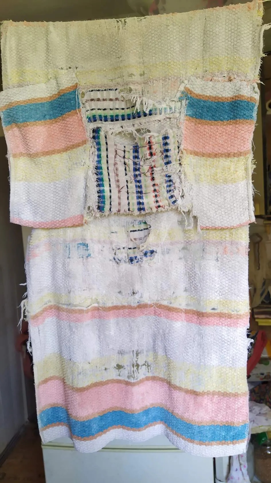 У меня второй полотенец, первый я заиспользовал до дыр, ставил заплатки, зашивал, но он все же наконец пришел в полную негодность. Я выбрал другой, уже использованный, с таким расчетом, что и его до конца смогу, успею (это еще надо чтобы самой жизни хватило…) добить. И это исходя из того, что всевозможных полотенец у меня… даже не то, что избыток, а они мне и не нужны – столько накопилось, и просто мешаются! Места и так в квартире мало, все захламлено, а тут еще целый мешок этих принадлежностей (кто-то дарил, другие были, третьи -- и не вспомню уже)! Да их и подарить-то не подаришь, это же предмет непосредственной гигиены все же, а они у меня без упаковки, хотя почти все и не использованные.