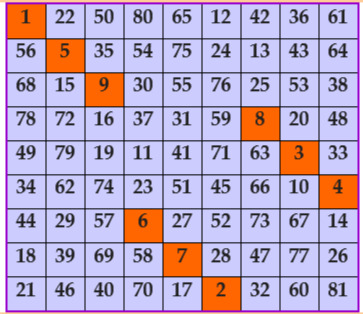 И ещё один идеальный квадрат 9-ого порядка. В  этом квадрате очень оригинальная начальная цепочка с МК-3 Ло-Шу!