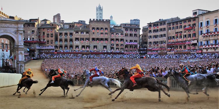 Билеты продаются только на деревянные трибуны (palchi) вокруг площади Пьяцца-дель-Кампо.