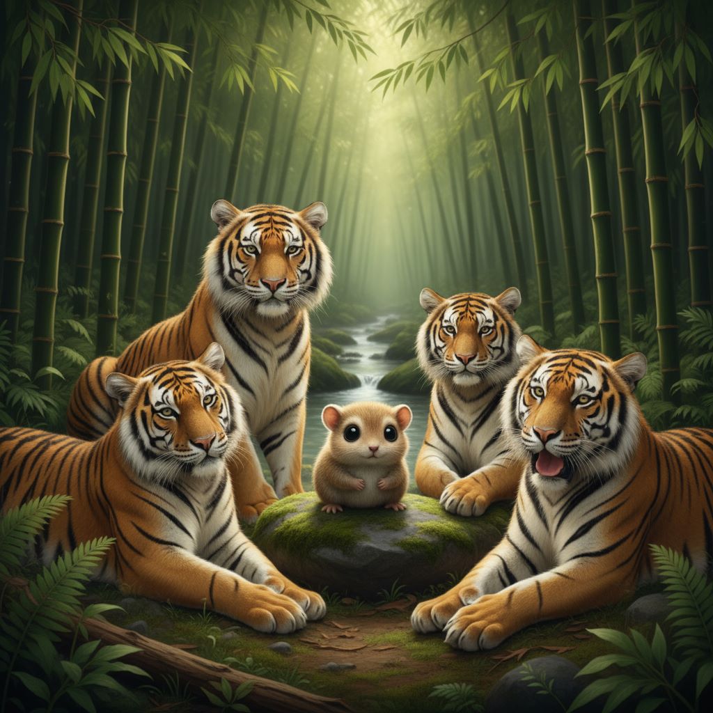 Тигры замурлыкали, признали в Лиме храброго гостя и пригласили его остаться на несколько дней. Вместе они исследовали рощи, отдыхали у водопада и делились историями. Лим понял — не так важно, кто царь, а кто подчинённый. Главное — быть собой, находить друзей и уважать чужой путь.