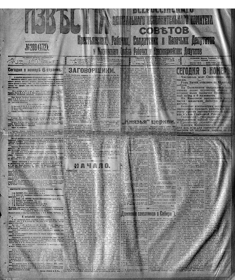 Сегодня Всеволод тщательно, с начала до конца решил почитать газету «Известия» от 25 сентября 1918 года (среда) № 208 (472). После левоэсеровского мятежа многие издания в Москве были закрыты, а удостоверения о регистрации, выданные до 6 июля 1918 года, были признаны недействительными. Это существенно повлияло на состав московской прессы, поэтому Всеволод обратился именно к объёмной (6 страниц) газете ВЦИК.