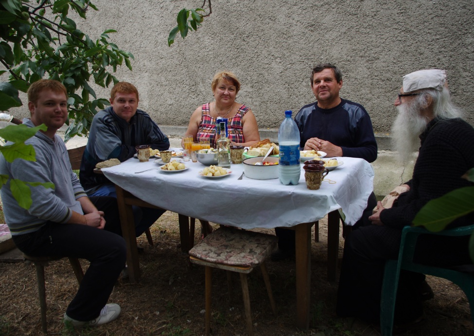 В тени какого-то раскидистого дерева большой стол, накрытый белой праздничной скатертью, ломился от самых простых яств, какие можно было собрать на быструю руку из своего огорода. Мы за этим столом были, как на пиру вновь обретённой жизни! А где-то посреди, невидимо... Христос.
