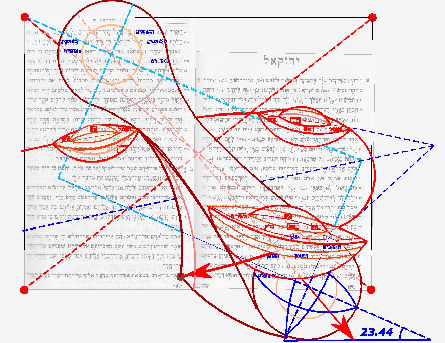 9. 11. 25 Как видите, есть еще одна модификация предыдущего чертежа. Скажу честно, что формально я на сегодняшний день считаю ее предположительной, хотя и уверен именно в этой интерпретации. Она будет доказана (или же опровергнута) только тогда, когда Экран первых двух страниц Йехэзкеля будет полностью расшифрован. А пока, с моей точки зрение, она имеет право лишь на роль обоснованной гипотезы.