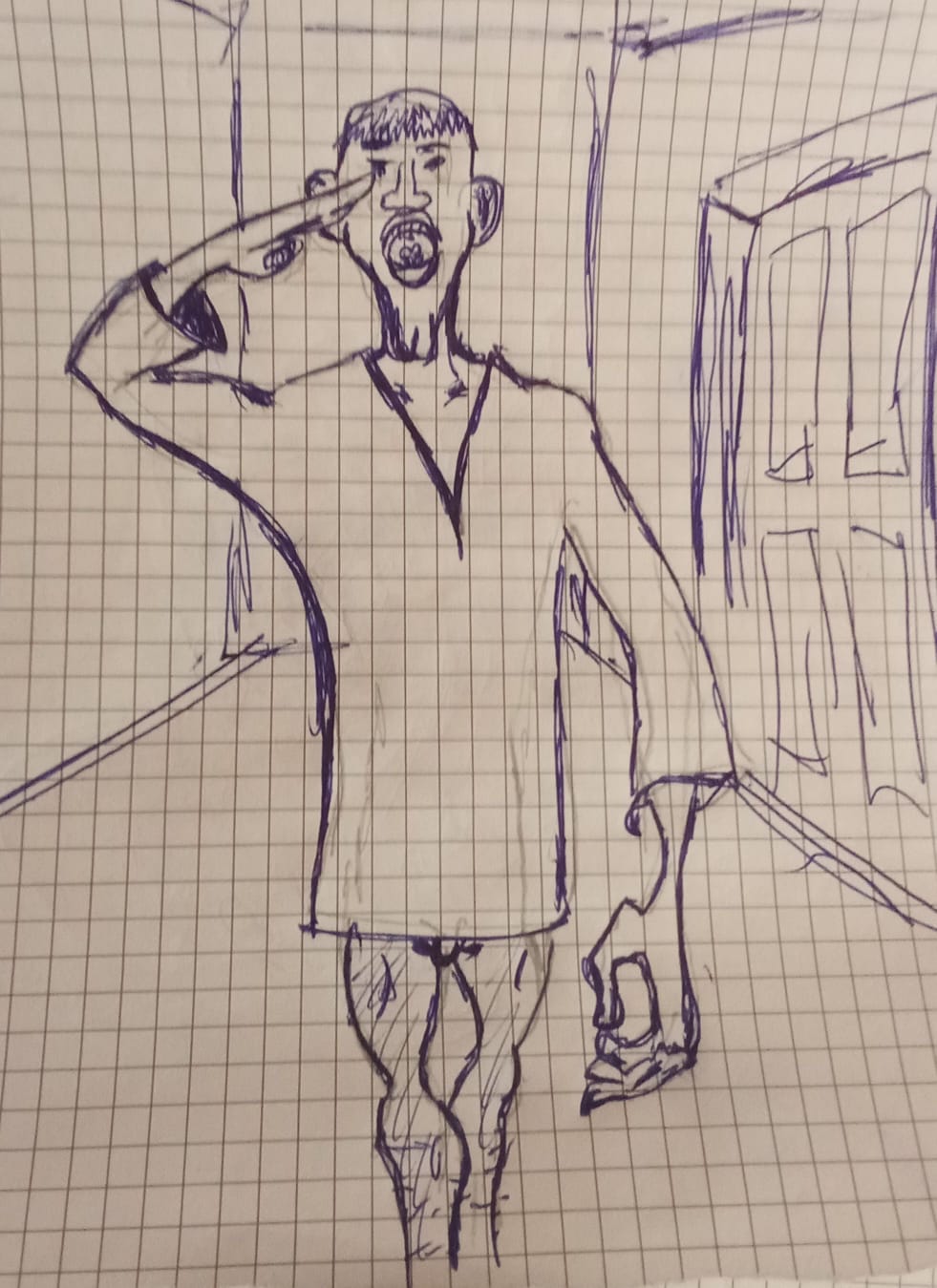 Сёма стоял одной рукой держась за ручку двери, а второй рукой прикрывая хозяйство, босиком, без штанов в одной нательной рубахе, такой как у Чапая, когда тот вел бой с внезапно напавшими белыми.