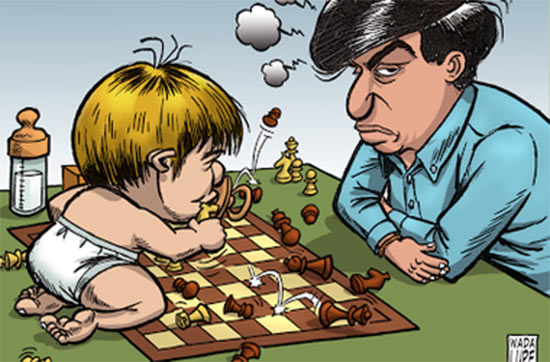 Пока никому из известных гроссмейстеров не удалось сделать из своих сыновей знаменитых шахматистов.О чемпионах даже речь не идёт.