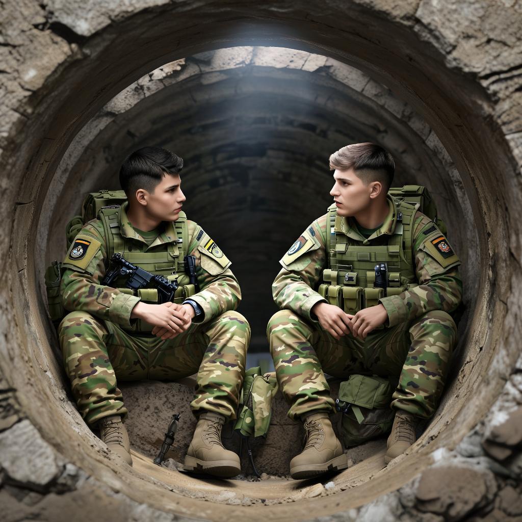 Оба бойца, просидев в заброшенном колодце N количество часов, уже теряли силы, но вдруг неожиданно для них послышались звуки человеческих шагов.