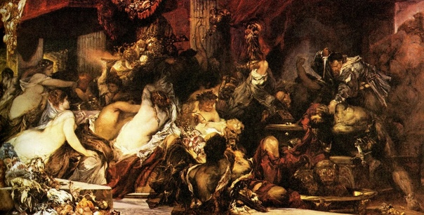 Описание: на полотне изображена сцена эпидемии чумы, которая опустошила Флоренцию в XIV веке. Макарт использует яркие цвета и динамичные композиции, чтобы передать эмоциональное напряжение и трагедию события.