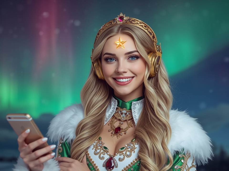 Свет вошёл не через дверь. Он пришёл в виде ленты северного сияния, которую кто;то растянул поперёк комнаты и закрутил в вуаль. Из вуали вышла Королева северного сияния — не фигура, а движение: плащ её переливался зелёными и пурпурными полосами света, голос был лёгок как ветер, в котором слышалось далёкое солнце.