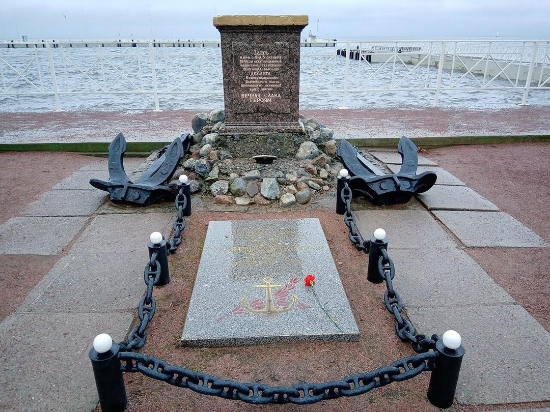 Памятник был установлен в 1980 году. На здании Большого дворца Петергофа также помещена мемориальная доска, посвящённая подвигу погибших моряков.