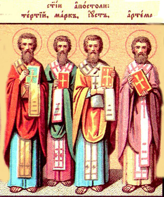См. также: "Память святых Апостолов Тертия, Марка, Иуста и Артемы" в изложении свт. Димитрия Ростовского.