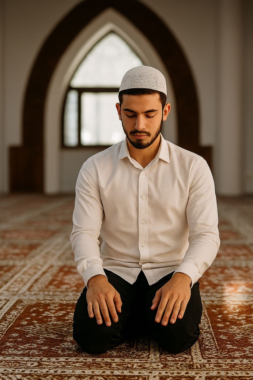 Затем со словами Аллаху Акбар мы выпрямляемся и остаемся в сидячем положении.