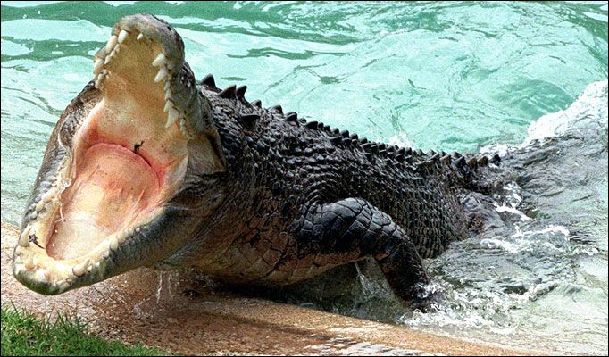 Каково это — побывать в пасти крокодила? Одному «счастливчику» уже свезло попасть на обед местному крокодилу, и не ГЕНЕ, и тем более не ДАНДИ, тот бы ему спуску не дал. Оказавшись в тисках огромных зубов и под прицелом маленьких злобных глазок, пойманный сопротивлялся как мог, но всё тщетно.