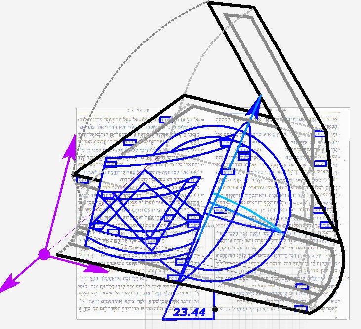 13. 11. 25 Прежде, чем я дам пояснения к этому чертежу, давайте на минутку освежим в памяти чертеж №5 из этого дневника - "Начало координат". Как Вы, может быть, помните, на нем часто повторяющееся имя Йонатан, выделенное синими прямоугольниками на Экране 100-101 второго тома Источника, начертило нам ПРЕДПОЛАГАЕМОЕ трехмерное пространство в виде параллелепипеда, на его фоне предполагаемую СФЕРУ с флагштоком, наклоненным на 23.44 градуса, то есть предполагаемую земную ось, и практически точную шестиконечную звезду на знамени Израиля, в точности такого же, как и сегодня. Общее предположение заключалось в том, что Авторский Формат текста предназначен для кодирования трехмерных ИЗОБРАЖЕНИЙ, а сфера Земли и знамя народа - и языка одной из стран - на котором написан ТАНАХ-БИБЛИЯ - идентифицируют место и происхождение дальнейших Событий.
