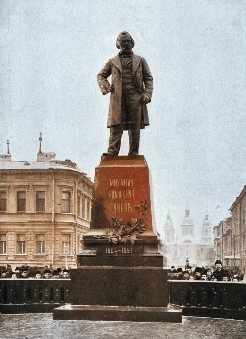 Вопрос о создании памятника М.И. Глинке был поднят весной 1901 г. в связи с предстоящим 100-летним юбилеем композитора, а инициатором создания памятника выступило Русское музыкальное общество. В Высочайше учрежденную Комиссию по сооружению памятника вошли В. Э. Направник, А. С. Танеев, Л. И. Шестакова (сестра композитора), В. В. Стасов и другие.