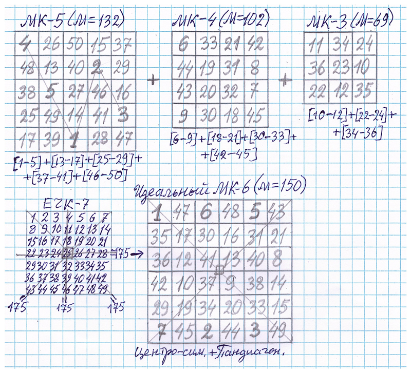 Приведем еще примеры интересных Нетрадиционных Магических Квадратов, показывающих их удивительные возможности (смотрите выше).