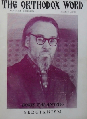 Boris Talantov, as these texts reveal, did not leave the communion of the Moscow Patriarchate; even though he was sympathetic to the members of the True Orthodox (Catacomb) Church whom he knew, he nonetheless repeats the standard Soviet terminology in calling this Church a "sect." Here, surely, one may be allowed to disagree. Without passing judgment on those who remain in the Patriarchate, we abroad can nonetheless not help but see that the solution of the present crisis of the Moscow Patriarchate – which is actually the culmination, as Talantov points out, of the betrayal of 1927 – cannot come from within the Patriarchate alone, but must come from the whole confessing Orthodox Church of Russia: the believers in the Catacombs who remain faithful to the testament of Metropolitan Joseph and the many bishops in 1927 who declared the "Sergianist" Church schismatic; the true believers who remain in the Patriarchate; and the Church Outside of Russia. About the latter it is hardly likely that Talantov could have had any unbiased information. It must be remembered, then, that these documents offer, not a complete picture of the state of Russian Orthodoxy today, but rather an authentic voice of the Orthodox faithful within the USSR, and specifically of the Moscow Patriarchate's own flock. These texts, however, are doubtless some of the primary documents from which the "complete picture" of 20th-century Russian Orthodoxy will one day be known.
