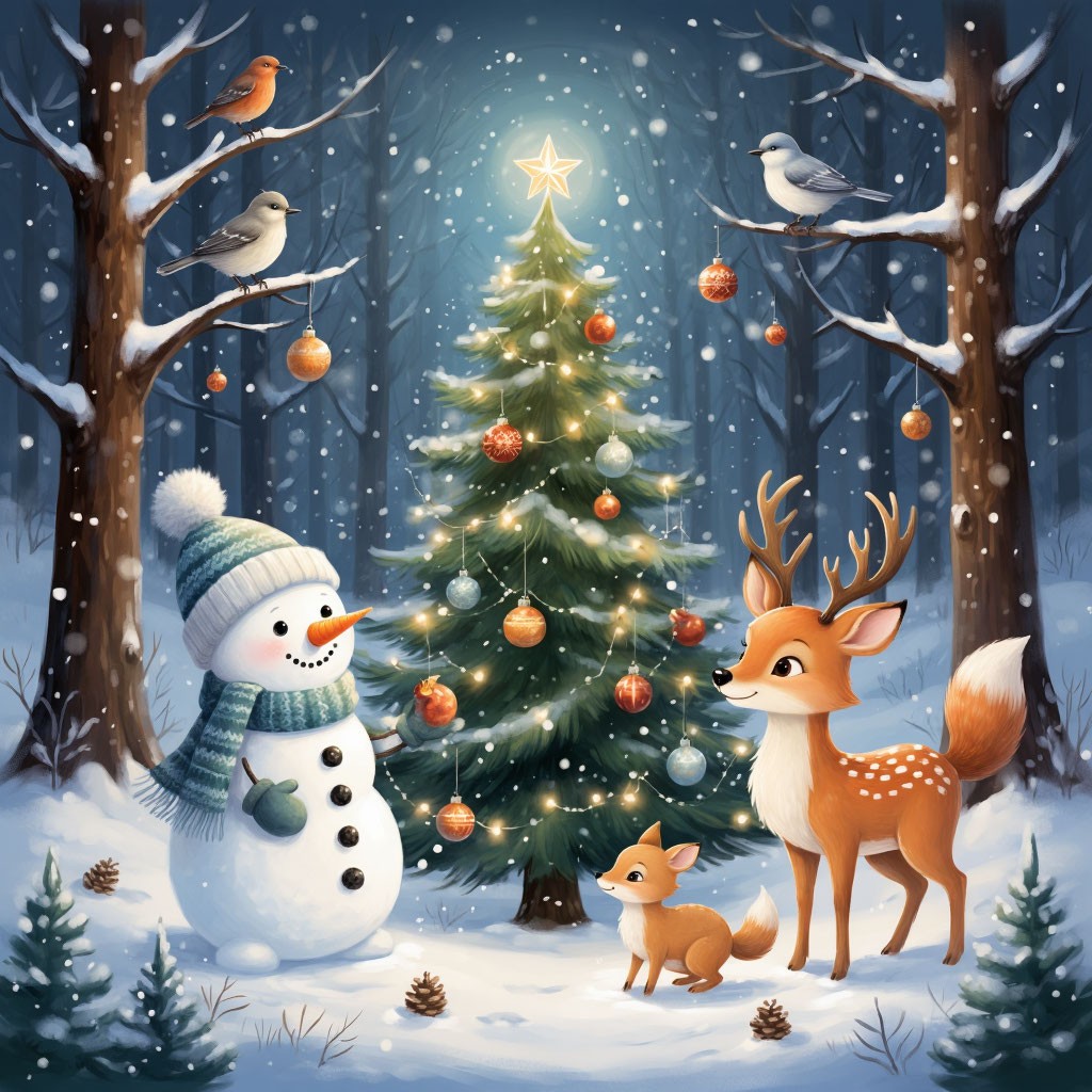 Когда друзья вернулись, лес озарился гирляндами огней. Метелица, кружась над поляной, создавала восхитительные снежинки, а лесные жители, взявшись за руки, запели праздничные песни.
