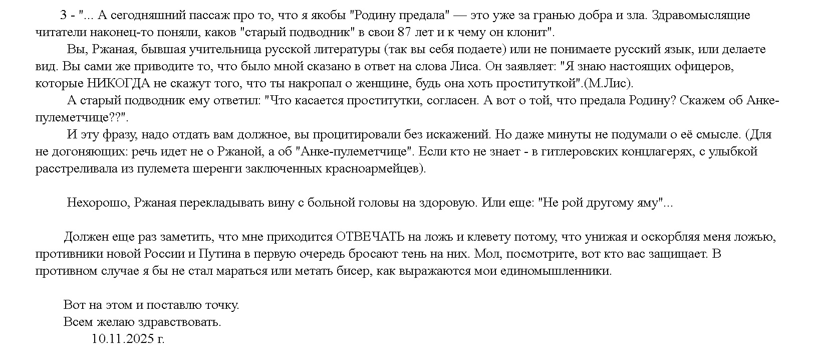 Посмотрите на скриншот фрагмента его статьи. Мало того, что он изворачивается, будто слова "предала Родину" не обо мне (а ведь Мстислав Лис прекрасно понял, о ком ведет речь подводник). Так он еще и Анку-пулеметчицу грязью измазал!