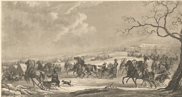 На рисунке А. И. Зауервейда "Поездка в Красный кабачок на санях. 1813 г."