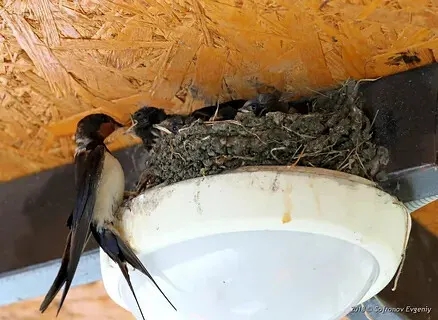 Ласточки выбрали место для гнезда в удивительном месте: в сарае на плафоне лампочки, размещённой на потолке. Своё гнёздо они строили из грязи и мусора, добавляя соломинки, перья, траву. Гнездо было похоже на аккуратную полусферу, прилипшую к вертикальной поверхности. То, что птички выбрали её дом и построили там гнездо — было почти знаком доверия.