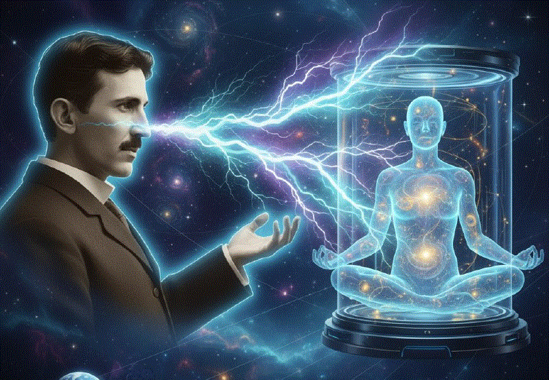 Никола Тесла, сербский изобретатель, эмигрировавший в США, был пионером в освоении электричества и плазмы — четвёртого состояния вещества, где газ ионизируется в высокоэнергетическую среду. Его эксперименты с "холодной плазмой" (низкотемпературной ионизацией без сильного нагрева) в 1890-х годах заложили основу для беспроводной энергии, современных ламп и даже идей о гармонии человека с космосом. Более века спустя Рух Вазар в проекте "Преображение человека" (2025) предлагает радикальный апгрейд: трансформацию человеческого тела в устойчивое плазменное состояние через вибрации, медитации и биохимию. Это не фантастика, а синтез науки, духовности и Теслы — от машинной энергии к человеческому бессмертию.