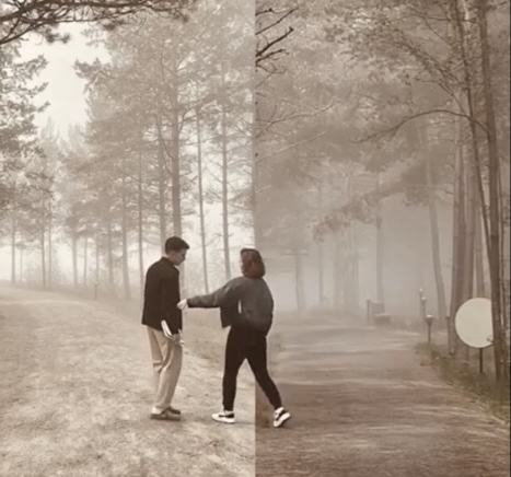 Алиса Al создала чудо. Оживила фотографию. Вроде не новость дня, но получилось весьма символично. На фото Карелия и молодожены в свадебном путешествии. И никого вокруг, только величественные деревья. Он фотографировал её, а она - его. Но ИИ соединил и у меня родился экспромт.
