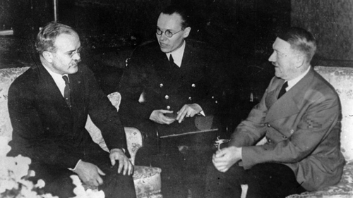 на фото:Переговоры Гитлера и Молотова. В теплой дружеской атмосфере. Именно в это время самолеты Люфтваффе поднимаются в атмосферу для бомбардировки Лондона, а самолеты Королевских ВВС – для налета на Берлин. «Битва за Британию» в разгаре.