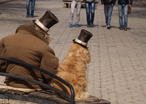 Экзотическая парочка сразу показалась мне достойной того, чтобы стать очередным экземпляром, запечатлённым в моей коллекции уличных фото. А чтобы оправдать приведённое выше название статьи, возникшее у меня перед съёмкой, я не пожелал обратить внимание на эту пару анфас.