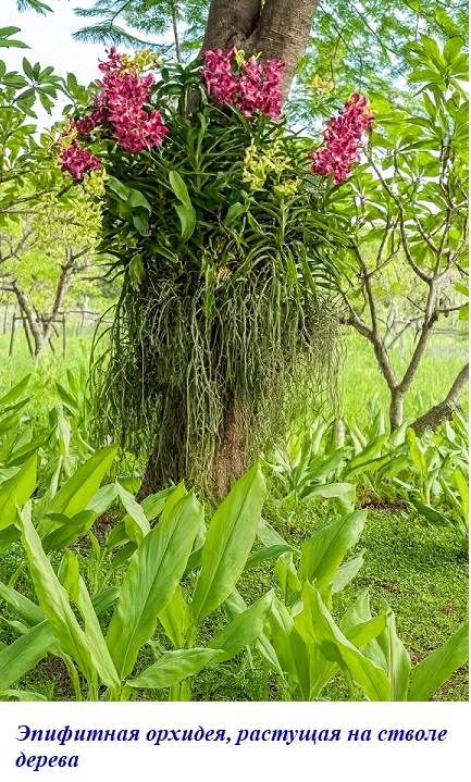 * Эпифитная орхидея — это растение, которое растёт на других растениях (например, на деревьях), используя их как опору, но не паразитируя на них. Она поглощает влагу и питательные вещества из воздуха и дождевой воды, и для её выращивания дома используются субстраты, такие как кора или мох.