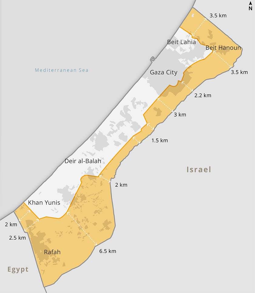периметра, окружающего Газу, включая филадельфийский коридор на границе с Египтом, "до полного исчезновения угрозы террора, исходящей из Газы по отношению к Израилю".