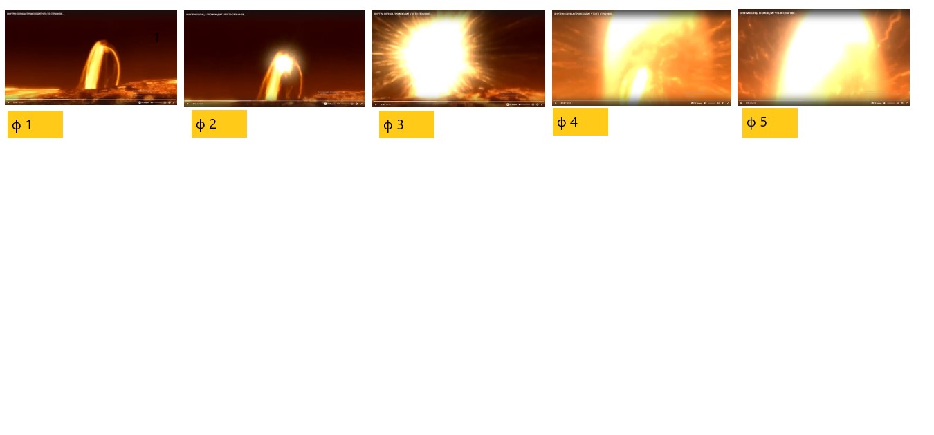 На цветной вкладке представлено 5 кадров очень короткого видеофильма, встроенного в динамичную панораму событий на солнечной поверхности. Автор эту информацию приводит, чтобы оправдать отсутствие источника. По всей видимости, это фрагмент снят зондом Паркер. Фрагмент длиться менее 5 с, время съемки не отображается.