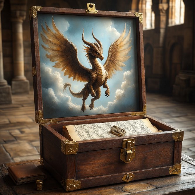«Нет! Смотрите!» — он указал на замок сундука. Это была не простая защелка, а сложный механизм с циферблатом и несколькими рычажками. И вокруг замочной скважины был выгравирован знакомый символ — три горы и звезда. — «Это не взламывается. Это отпирается. Нужен ключ. Или… код».
