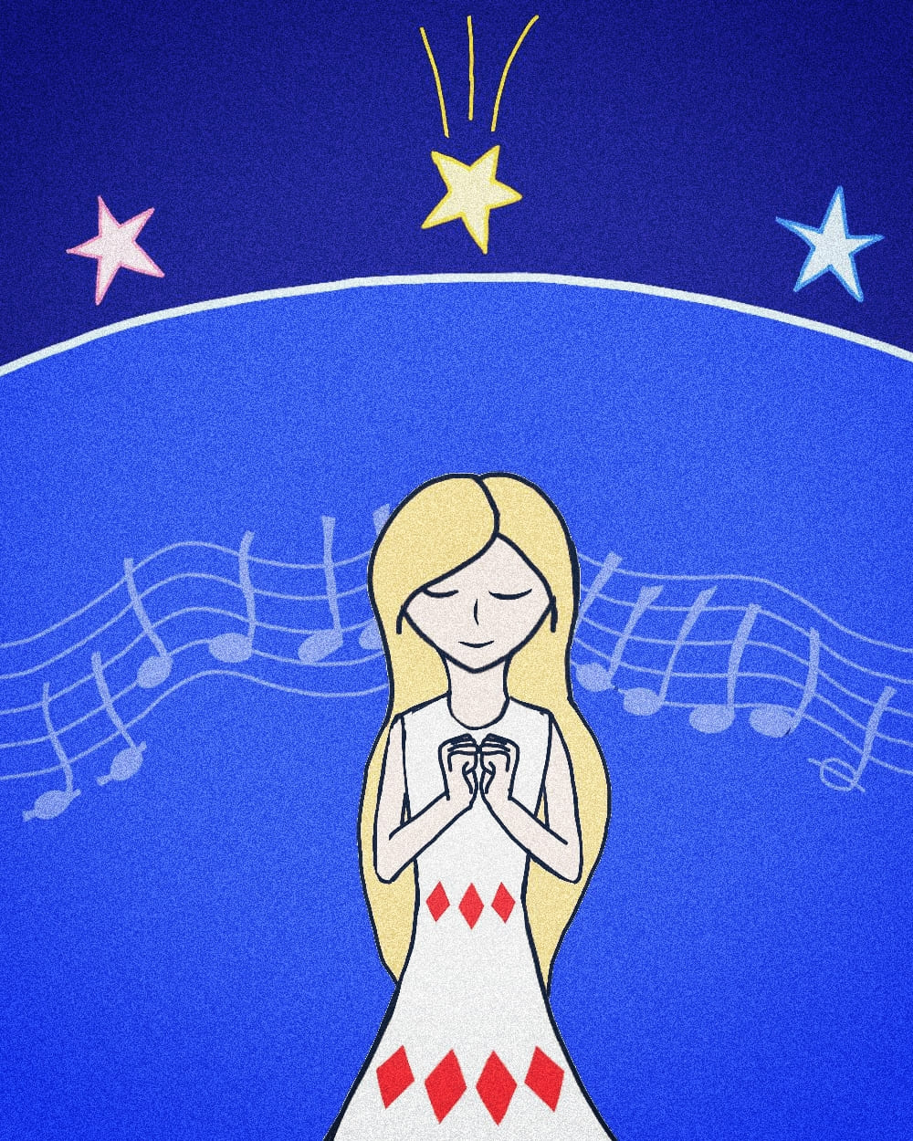 Стояла как-то Семёрка у дверей музыкального театра, слушала, как поют Червонная Десятка и её ученики – а тут вышла сама Десятка передохнуть, а Семёрка и отойти не успела, и притвориться никак не могла, что не подслушивала – да что там, притворяться она не умела вовсе. Посмотрела на неё Червонная Десятка так строго, что Семёрка бежать была готова подобру-поздорову – но тут велела певица: