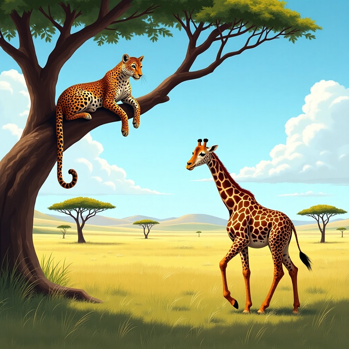 Жирафа и леопард