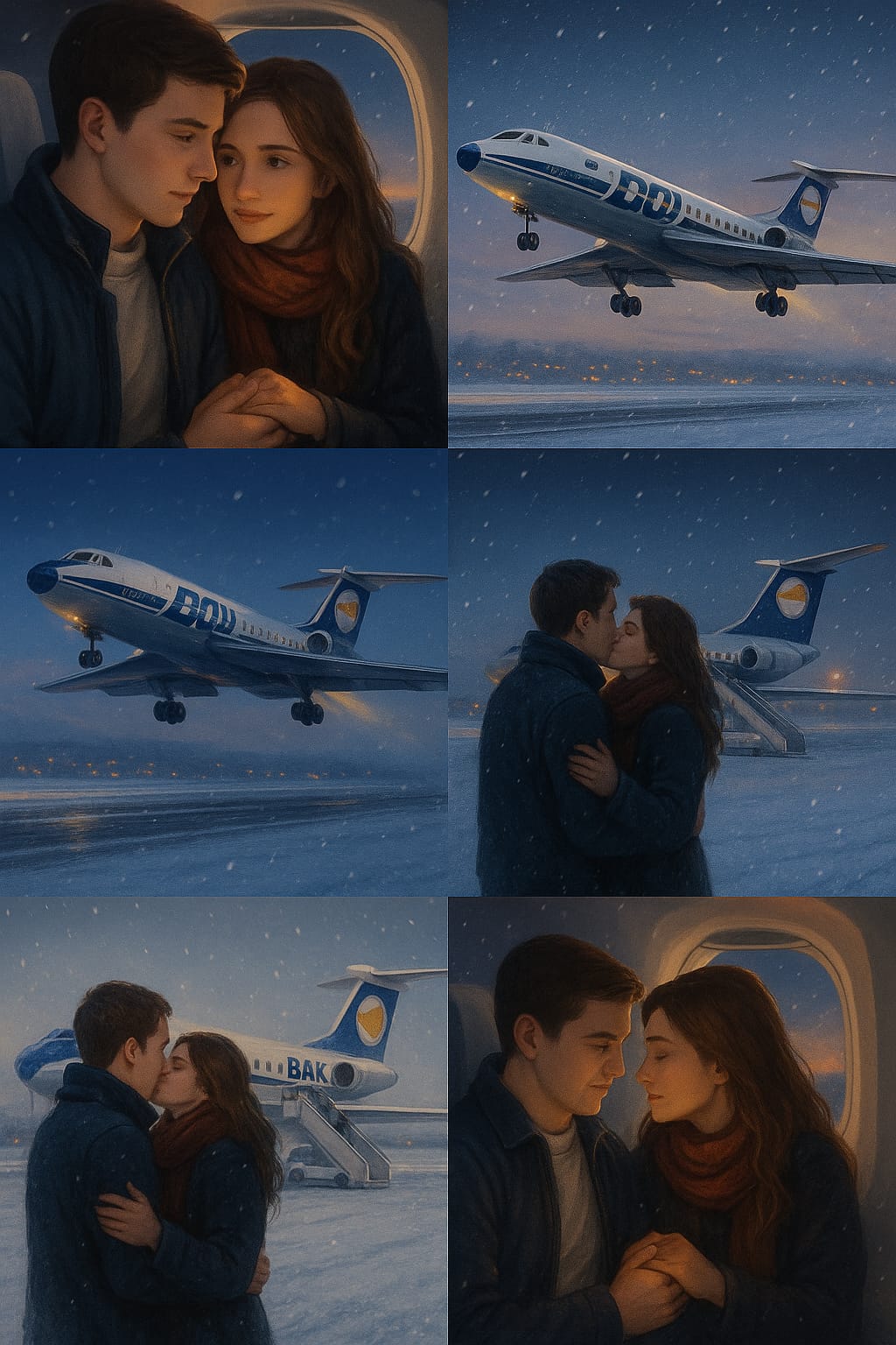 Горели огни взлётной полосы, и снег шёл медленно, как кадры фильма.