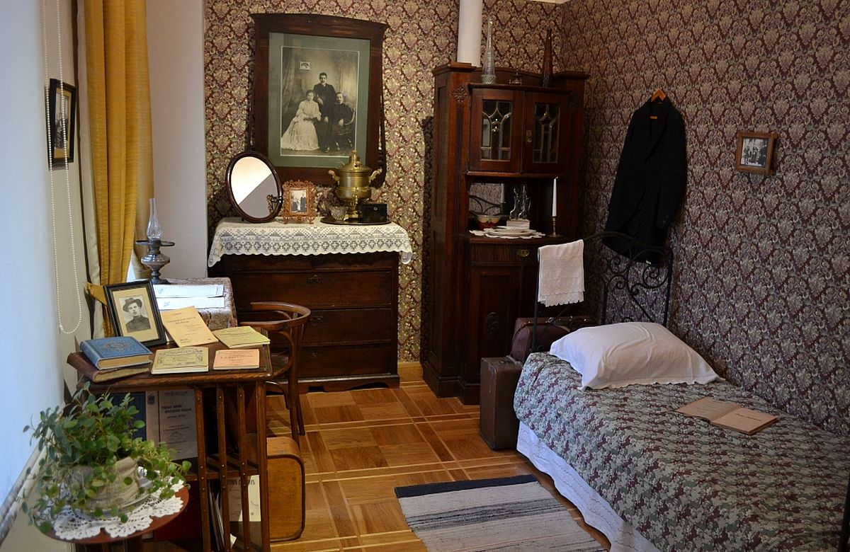 Иллюстрация: 1918. Гостевая комната в доходном элитном доме. Фото из экспозиции Музея современной истории – «Мой дом – Россия» в здании Музея декоративно-прикладного и народного искусства на улице Делегатской в Москве. Примерно такой была комната Макса-Всеволода, арендованная им в четырёхкомнатной квартире Е.Н. Копыловой на ул. Денежный переулок, д. 4.