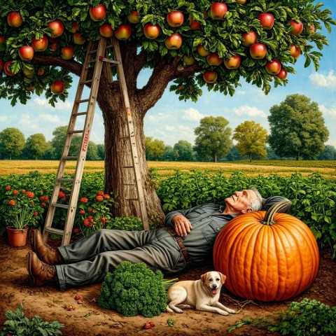 - Да полез за петрушкой на яблоню, а тыква упала, и прям по голове!