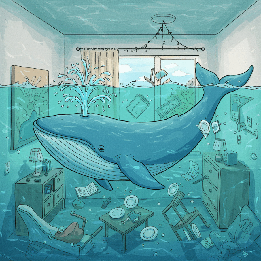 Матрас лежал посреди комнаты, сдувшийся и жалкий. Хотя почему жалкий? Величавый и спокойный, как кит. Всё вернулось на круги своя, только теперь еще и с финансовыми потерями на ремонт чужого паркета.