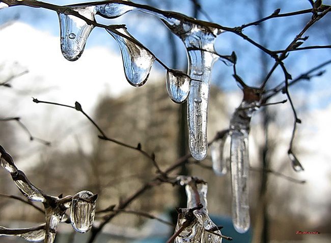 С сосулек падает капель: