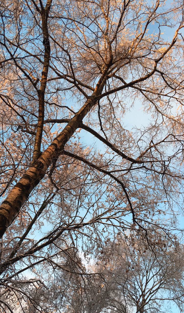 Фотография автора «Ветви берёзы в лучах вечерней зари и первом снеге».